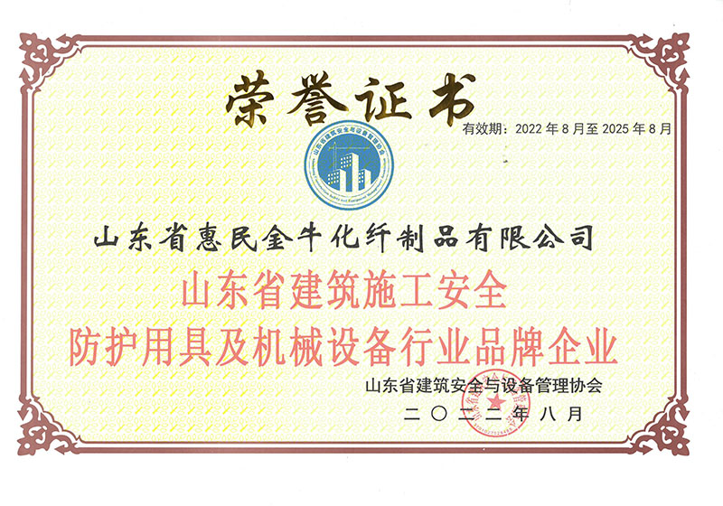 山東省惠民金牛化纖制品有限公司成立于一九九九年,座落于物華天寶、人杰地靈的魯北平原、孫子故里(位于濟(jì)南至濱州220國(guó)道中段)。濟(jì)東高速惠民姜樓出口。       姜樓鎮(zhèn)生產(chǎn)繩網(wǎng)已有三百年的歷史,被譽(yù)為“繩網(wǎng)之都”。本公司交通便利,經(jīng)濟(jì)發(fā)展迅速,繩、網(wǎng)、安全帶、安全帽及化纖制品規(guī)格齊全,公司連續(xù)10年被國(guó)家指定為特種勞動(dòng)防護(hù)用品定點(diǎn)生產(chǎn)企業(yè)。用戶滿意勞動(dòng)防護(hù)用品生產(chǎn)企業(yè)。       公司生產(chǎn)流程:從抽絲,捻線,制繩,織網(wǎng),織帶,注塑,成品。       公司現(xiàn)有職工125人,總占地6000平方米,其中廠房占地面積5000平方米,擁有固定資產(chǎn)2000多萬(wàn)元。密目網(wǎng)10臺(tái)套,捻線機(jī)3臺(tái),大型噴絲機(jī)3臺(tái),織帶機(jī)13臺(tái),全自動(dòng)大型縫紉機(jī)15臺(tái),合繩機(jī)5臺(tái)。大型注塑機(jī)2臺(tái),有節(jié)單鉤織網(wǎng)機(jī)4臺(tái),大型染色機(jī)1臺(tái)。主要生產(chǎn)安全網(wǎng)、密目式安全立網(wǎng)、安全帶、安全帽、高強(qiáng)絲及各種防護(hù)網(wǎng)、丙綸線、施工線、安全繩、汽車網(wǎng)、火車、異形網(wǎng)等。產(chǎn)品遠(yuǎn)銷全國(guó)各省、市、自治區(qū),公司產(chǎn)品自投放市場(chǎng)以來(lái)深受各級(jí)主管部門及建筑施工單位的好評(píng)。       公司經(jīng)營(yíng)宗旨:“,用戶至上;以質(zhì)量求生存,...
